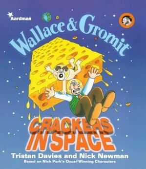 Crackers in Space is a 1999 Wallace & Gromit book by Tristan Davies and Nick Newman where Wallace goes overboard with the helium balloons for Gromit's birthday, and the whole shed accidentally launches into space. Wallace gathers a team of is friends and neighbours to go to space and save West Wallaby Street from being destroyed by cheese.