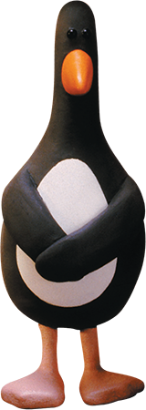 Feathers McGraw is a silent yet villainous penguin who first appeared in the film The Wrong Trousers as its main antagonist and later appearing in the feature film Wallace & Gromit: Vengeance Most Fowl, making him the main antagonist in the Wallace & Gromit franchise with two major roles, the most out of any villain in the franchise. He is a nefarious criminal mastermind and bird of many faces; long thought to be a chicken, Feathers was actually exposed as a penguin, when his plan to rob a museum of a precious diamond was foiled by Wallace and Gromit. He wears a red rubber glove on top of his head, which is how he disguises himself as a chicken. This is apparently enough to fool Wallace on two separate occasions, as well as the local law enforcement.