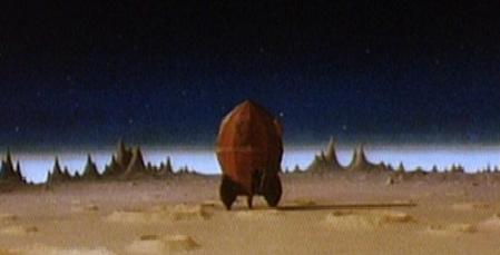 When departing from the moon, the Cooker attempts to stow-away in the lower hull of the rocket, but it is blown out of the rocket and accidentally breaks off pieces of the hull during the blast. The robot fashions the left-behind parts of the rocket into a pair of skis which it uses to ski on the moon.
